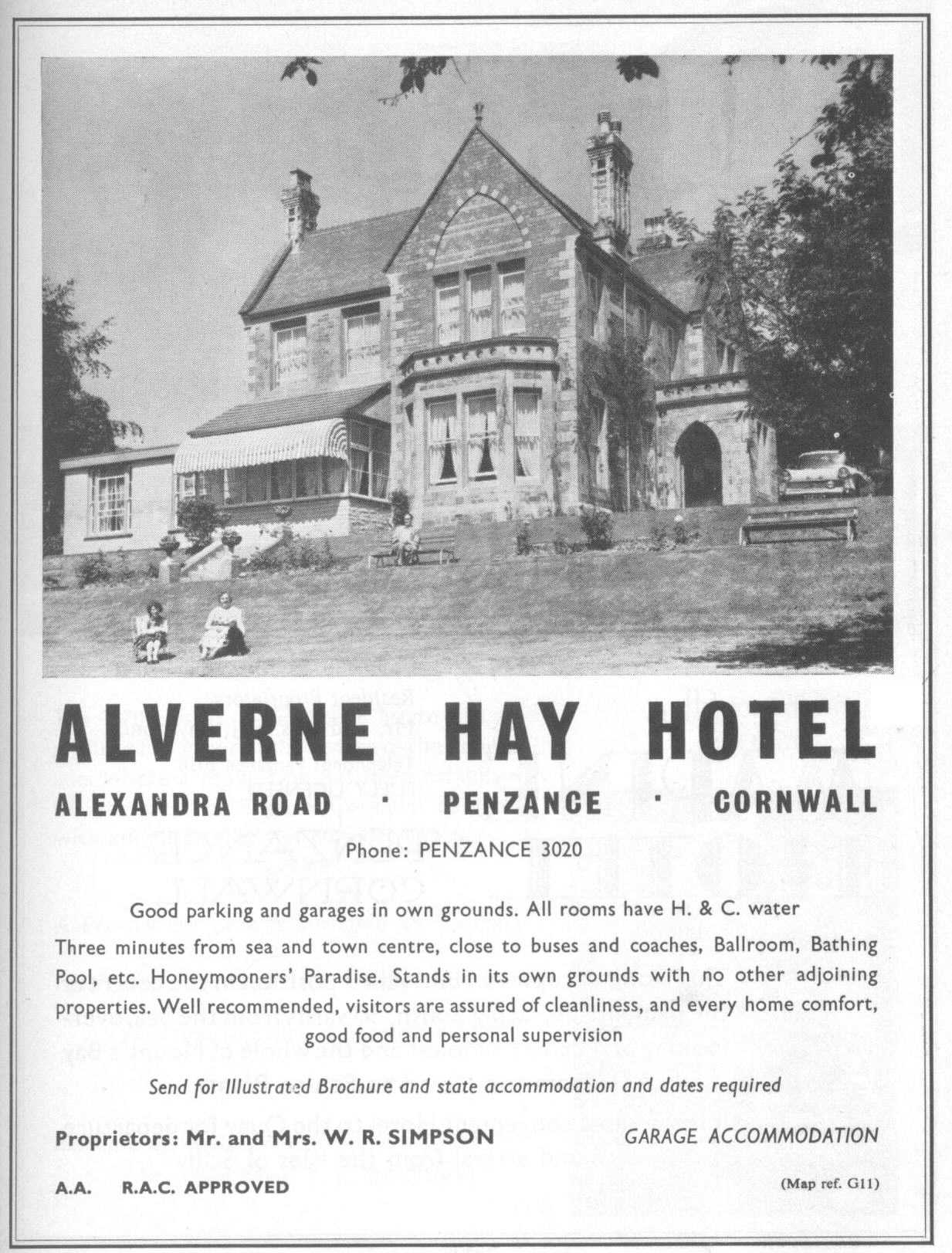 Alverne House in town was built by the Pascoe family in 1754. Alverne House at 30 Alverton Street was later home of Robert Hawker Peniel Preston (1838-1933), local artist and photographer.