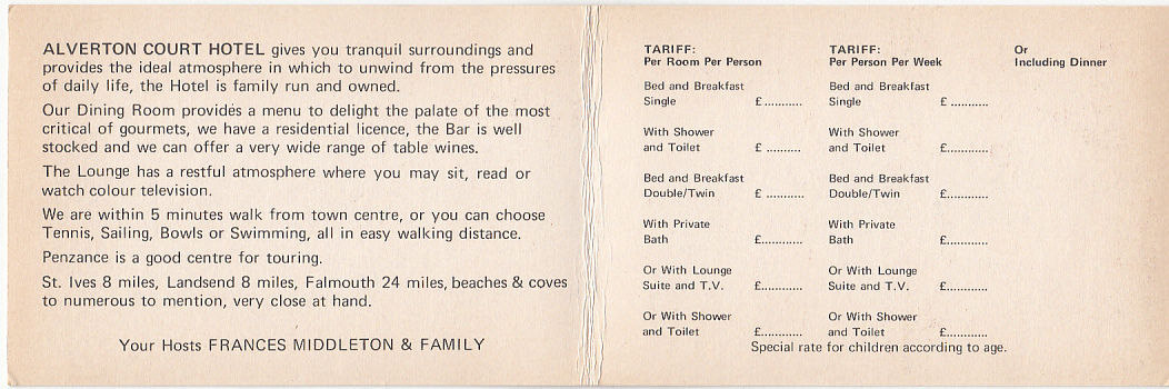 Over the years the building has became used as the Alverton Court Hotel, and a nursing home, and more recently, after redevelopment, as an apartment building; Alverton Court.