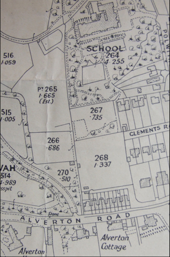 of Alverton showing Clements Road area, with Greenbank and Weeth Field to left