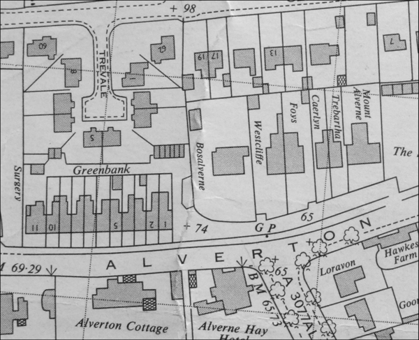 Alverton might reasonably be thought to start around Alphington House, at one time the Alverton School For Girls, and currently the Registry Office. Alphington House and The Weeths in Alverton Place were both built about 1830.