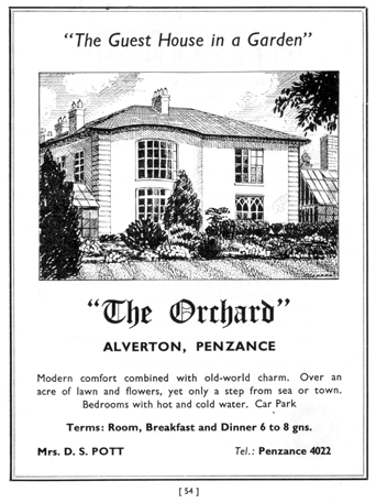 Back in Rosamunde Pilcher's childhood, in the 1930's, redevelopment had already occurred in the area we now know as Kings Road and Clements Road, but the area of Tredarvah Road was still open country. Rosamunde would probably have sometimes trodden the back path from the main house between the fields, down to the Alverton Road just beyond Greenbank. A former occupant of Greenbank Mrs Anne Buchanan vividly remembers the field to the back of her house then, when anemones grew here and chrysanthemums too.