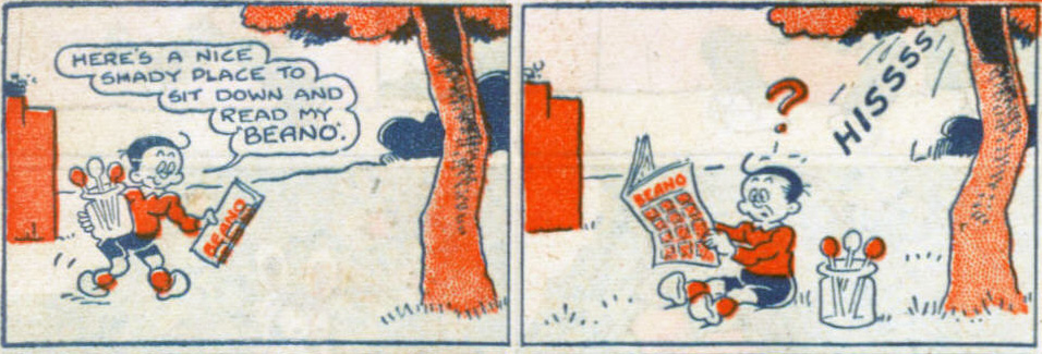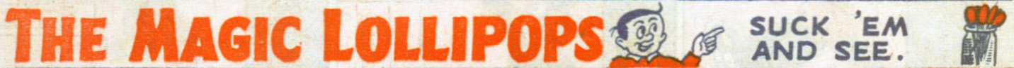 'The Magic Lollipops' featured a boy with a jar of lollipops, which, if you licked them would turn into what you wanted, though not necessarily in quite the way you wanted. 'The Magic Lollipops' ran in The Beano from 1941 until 1951, during which time sweets were in short supply. The rationing of sugar and sweets in Britain during WWII was severe and continued for quite a few years after the war.